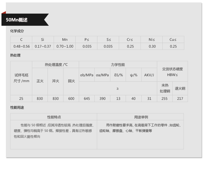 日本50Mn,美国50Mn美标,德国50Mn,瑞典50Mn,进口50Mn国标