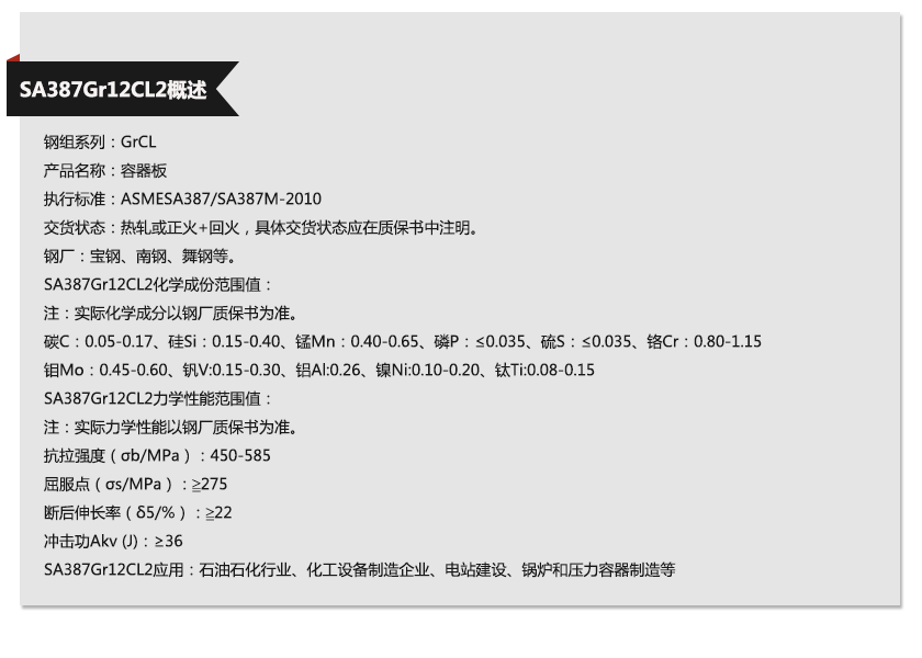 牌 号:SA387Gr12CL2