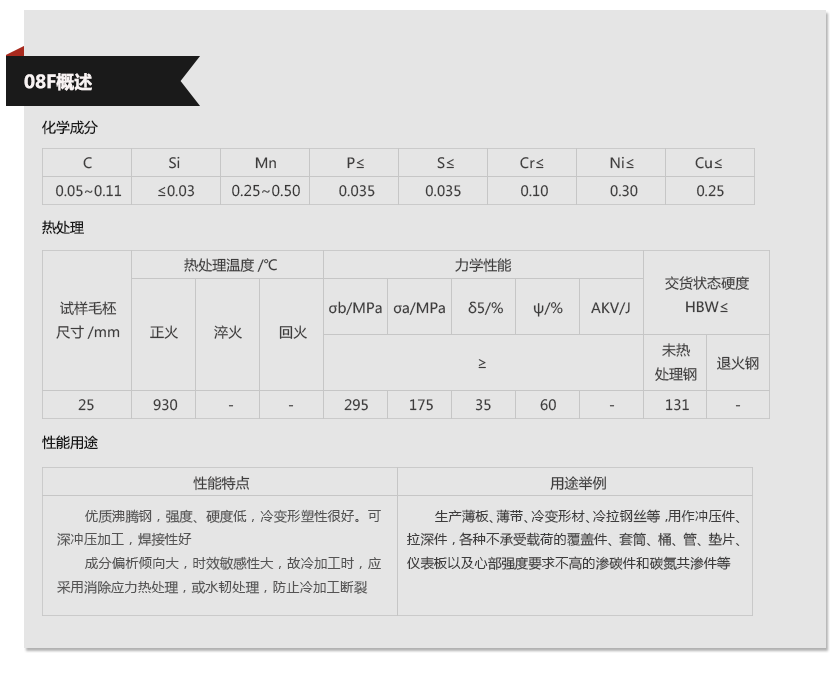 上海宝夕实业—08F碳素钢材质单,上海宝夕实业—08F碳素钢成分表,上海宝夕实业—08F碳素钢是什么材料